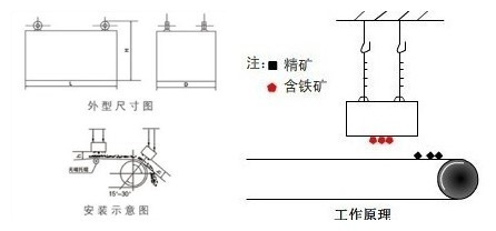 懸掛式除鐵器適用于皮帶運輸機、電磁振動給料機、下料溜槽上的非磁性物料除鐵,磁力滾筒除鐵器適用于皮帶輸送機。